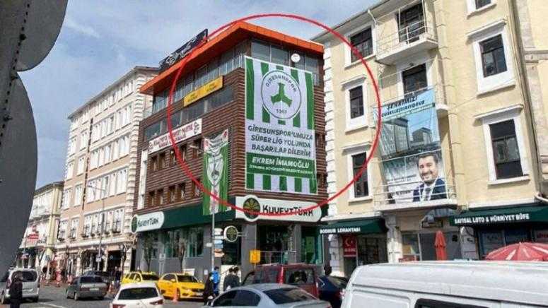 İstanbul Büyükşehir Belediye Başkanı Ekrem İmamoğlu, 1. Lig’de ilk sırada yer alan ve Süper Lig’e çıkmak için avantajlı durumda bulunan Giresunspor’a başarı dileğinde bulunduğunu göstermek amacıyla CHP Giresun İl Başkanlığı’na 10 metre büyüklüğünde üç bayrak gönderdi. CHP İl Gençlik Kolları da izin alarak bir binaya üzerinde “Giresunsporumuza Süper Lig yolunda başarılar dilerim” yazılı bayrak astı. BAYRAĞI KALDIRIN BASKISISözcü'den İsmail Akduman'ın haberinde yer alan iddialara göre bayrağın binaya asılmasına izin veren ve kiracı olan işletmeciyi mal sahibi arayarak çıkarmakla tehdit etti.